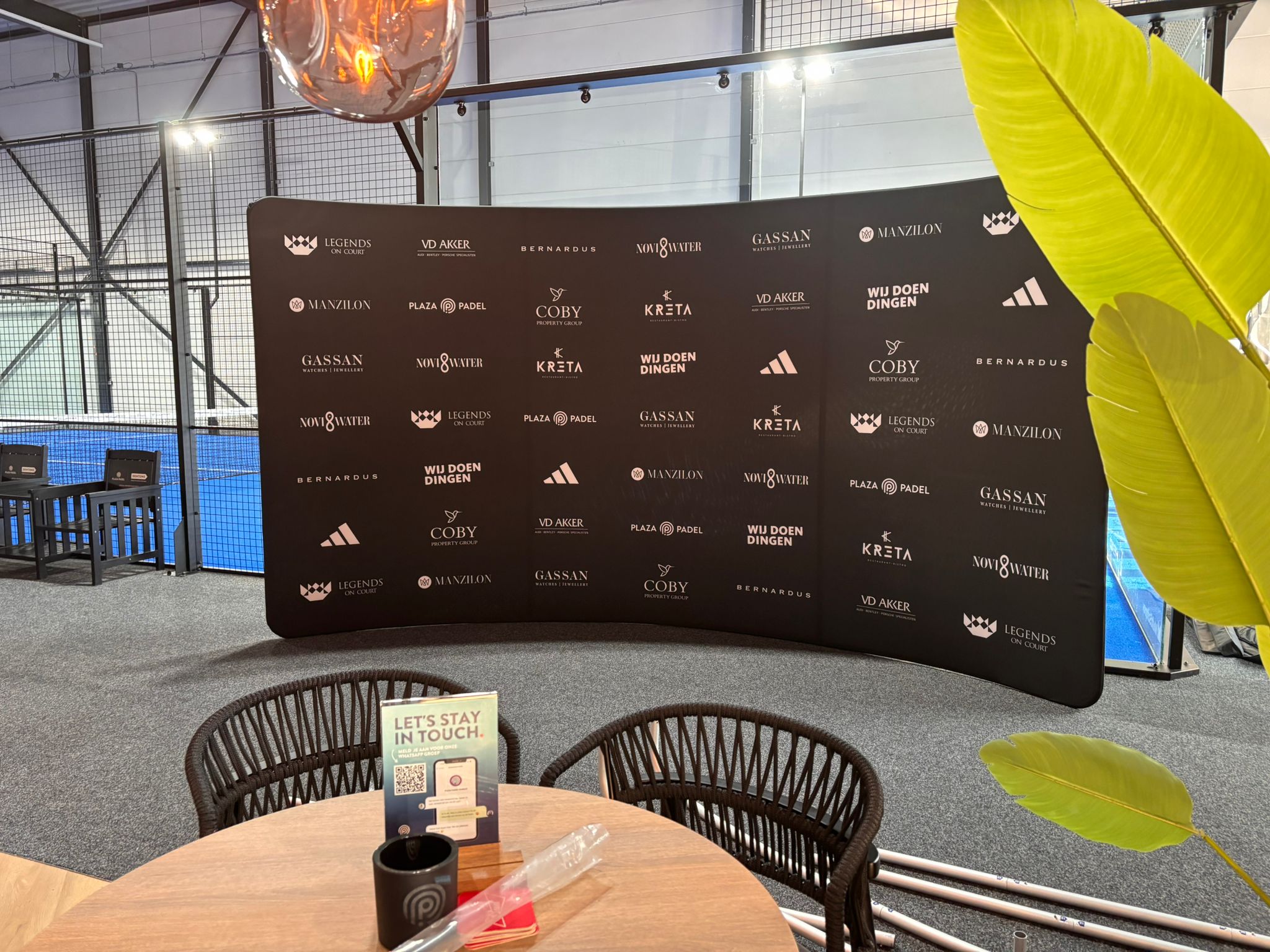 Masters of the Brand realiseerde de complete visuele aankleding van de padelbaan en eventruimte. Netbanden werden voorzien van sponsorbranding direct op het speelveld, terwijl baandoeken zorgden voor zichtbaarheid rondom de baan. Daarnaast zijn forex borden geplaatst voor communicatie en sponsoruitingen, en werd een backdrop gerealiseerd als vaste plek voor foto’s, interviews en media. Op deze manier is de branding op alle belangrijke momenten en posities binnen het event zichtbaar.